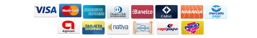 Aceptamos tarjetas de Crédito, Débito, transferencia bancaria (15% OFF) o efectivo.