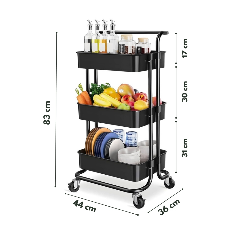 El carrito organizador de metal con ruedas Edda, cuenta con un mango y 4 ruedas que permite moverlo con facilidad y utilizarlo en cualquier espacio de tu hogar .