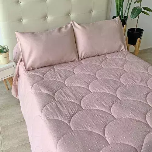 ¡Cubrecama King 4 Estaciones Rosa Nude Con Fundas Lisas! ??